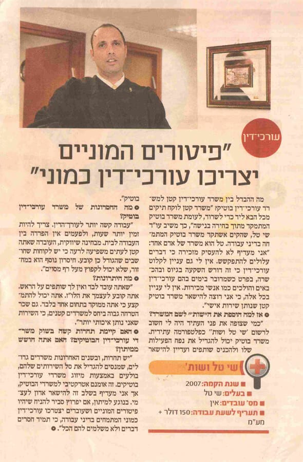 משרד עורכי דין שי טל עורך דין דיני עבודה ועורך דין דיני ספורט, הינו משרד בוטיק איכותי המתמחה בתחום משפט העבודה והספורט. מייסד המשרד, עו”ד שי טל, מומחה בדיני עבודה ודיני ספורט, מקפיד על סטנדרטים מקצועיים גבוהים ביותר, על מעורבות אישית וישירה וטיפול משפטי איכותי, יעיל, זמין ואפקטיבי.